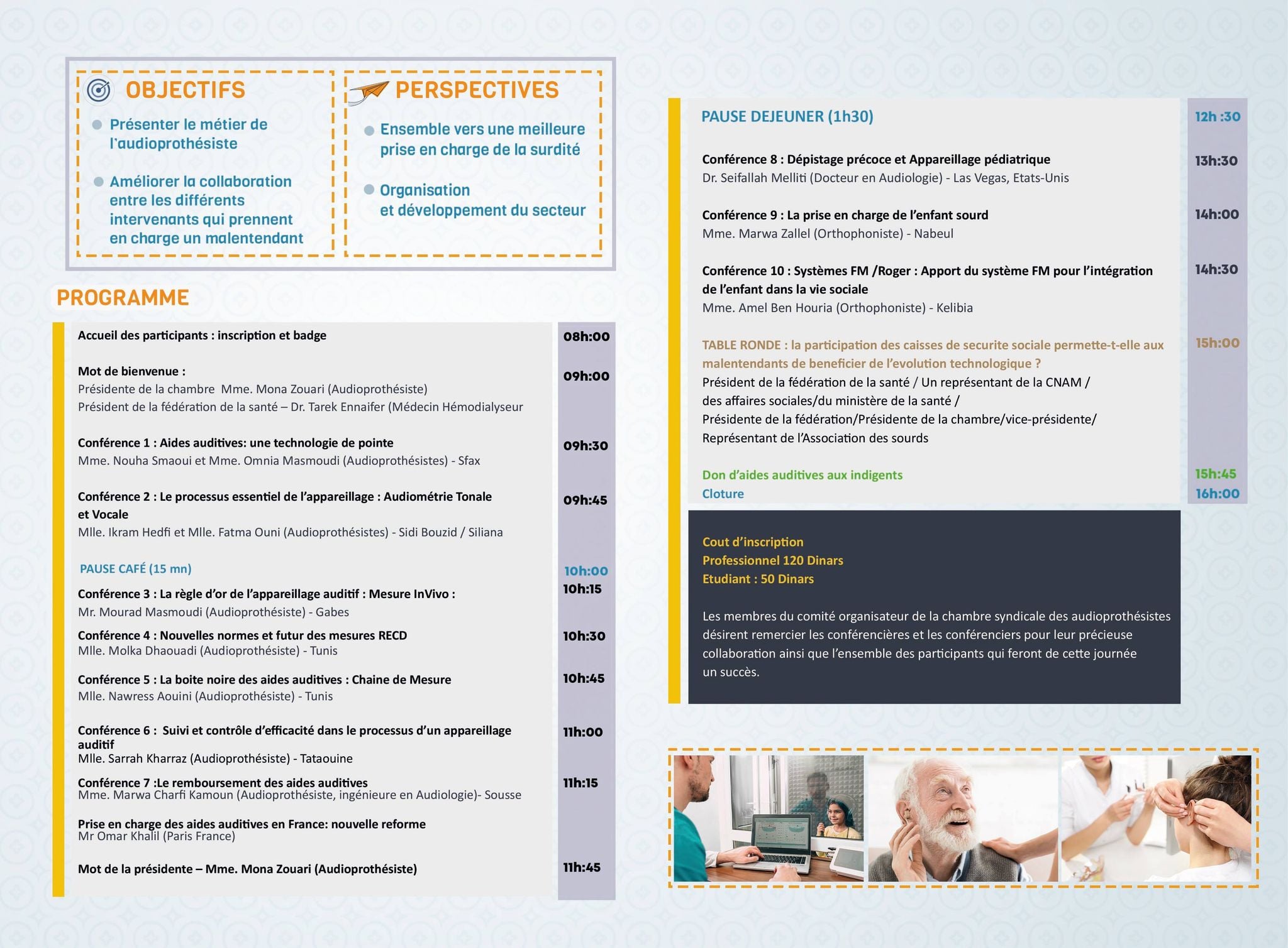 Un programme très riche en conférences a été arrêté pour cette journée, traduisant les différentes techniques et process adoptés pour l’évaluation de la surdité et détailler les procédures de correction.